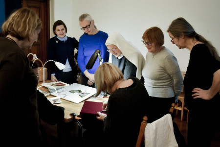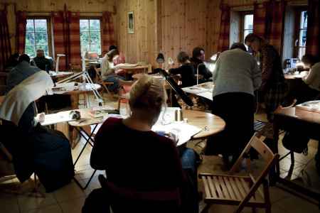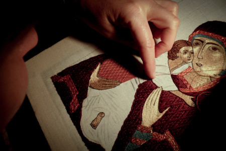 Beveik prieš dešimtmetį susibūrė gražus būrelis vienuolių ir pasauliečių, kurias apjungė noras siuvinėti ikonas. 2017 m. rudenį mūsų vienuolyne įvyko pirmoji 5 dienų trukmės sesija, kurios metu buvo mokomasi ikonų siuvinėjimo meno, o iki 2019 m. – dar 3. Šias sesijas vedė Olga Djačkova – skaitė paskaitas apie siuvinėtų ikonų tradicijas, dalinosi aktualijomis. Jų pabaigoje būdavo surengiamos darbų parodos. Vėliau siuvinėtojos tęsė darbą savarankiškai namuose ir kas mėnesį vieną popietę skirdavo bendram darbui ir bendrystei „Marijos Namuose“.
